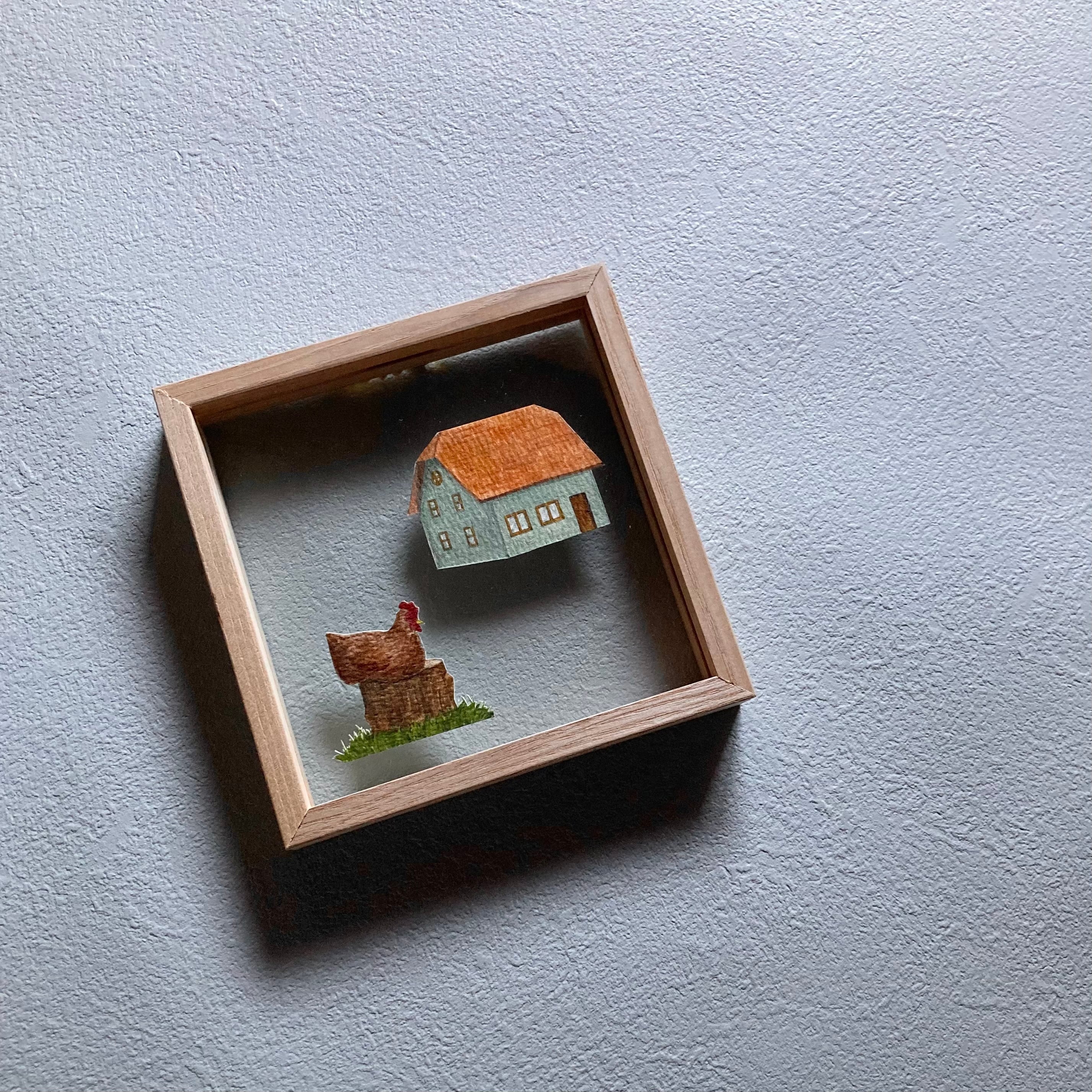 額付き原画 【 ニワトリの居る家 】
