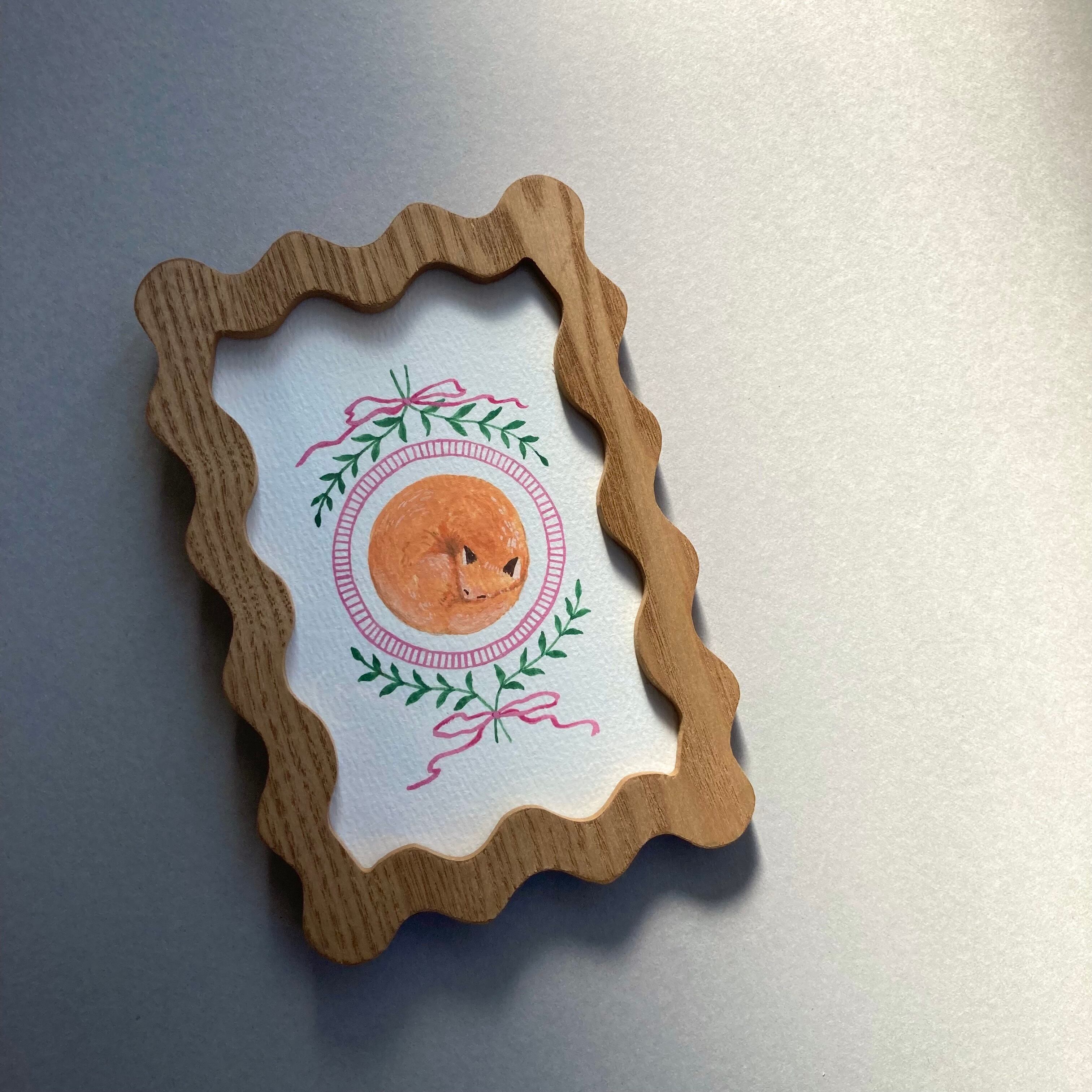 額付き 原画 【キツネ ✶ ピンクのリボン】